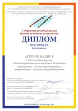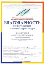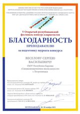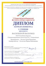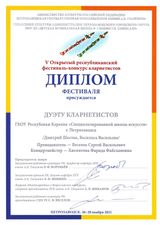 26-28 ноября Петрозаводская государственная консерватория имени А.К. Глазунова проводила ежегодный V Открытый республиканский фестиваль-конкурс кларнетистов. Наша школа традиционно выставила наибольшее количество участников - учеников класса заслуженного работника культуры Республики Карелия Веселова С.В. В конкурсной номинации успешно выступила Васильева Василиса (7а). Она награждена дипломом лауреата конкурса I степени! В фестивальной программе отмечены как яркие выступления Дмитрия Шестака (9б) соло и в ансамбле с Василисой, так и первые шаги на сцене Агеевой Мадины (2 кл.) и Тарасова Станислава (3 кл). Все они удостоены дипломов фестиваля. Благодарностями жюри награждены педагог Веселов С.В. и концертмейстер Хисмятова Ф.Ф.. Поздравляем!