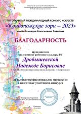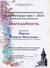 Благодарностями главы Администрации Кондопожского муниципального района и директора ДШИ г. Кондопога награждены педагоги и концертмейстеры призёров конкурса.