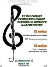 25-26 ноября 2023 г. в Малом зале ДМШ № 1имени Г. Синисало проходил очередной VII Открытый республиканский фестиваль-конкурс кларнетистов. Юные кларнетисты имели возможность выступить в фестивальном концерте, или в конкурсных прослушиваниях. Юные музыканты из других регионов приняли участие в заочной форме, предоставив видеозаписи своих выступлений. Всего 37 кларнетистов из Республики Карелия, Санкт-Петербурга, Липецкой области и Китайской Народной Республики показали своё искусство на этом празднике.
