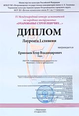 Поздравляем Егора Владимировича Ермолаева - педагога народного отделения по классу баяна с присуждением ему диплома лауреата I степени в номинации «Солисты-преподаватели» на IX Международном конкурсе исполнителей на народных инструментах «Очарованье струн певучих…»,который проходил с 4-9 апреля в Петрозаводской государственной консерватории им. А.К. Глазунова.