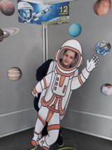В холле школы нас утром встречал космонавт, планеты и звёзды! Каждый мог примерить на себя роль космонавта и сфотографироваться!