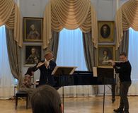 Завершились мероприятия конкурса большим праздником музыки для флейты в зале Музея изобразительных искусств Республики Карелия. Открыли концерт выступления членов жюри. Тёплым романтичным звуком золотой флейты и уникальной виртуозностью была отмечена игра Николая Мохова. Яркую колоритную композицию китайского автора представила слушателям Анастасия Зелинская. Особенно впечатлило слушателей концерта исполнение сочинения К. Кенона «Ночной монолог» в память С.В. Пошехова. Его исполнили прекрасные музыканты и давние партнёры по классу флейты консерватории – Юрий Александров и Елена Пошехова. Организаторы сердечно благодарят Елену Павловну Пошехову за внимание к нашему Конкурсу, приездв Петрозаводск и участие в концерте.