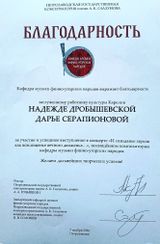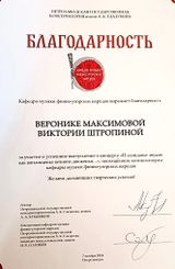 Учащиеся народного отделения «Специализированной школы искусств», класса «Кантеле» (педагог Н. Б. Дробышевская) приняли активное участие в концерте. В исполнении Вероники Максимовой, Виктории Штропиной, Ксении Алексеевой, Александры Котовой прозвучали произведения Александра Сергеевича Белобородова из сборника «Школа игры на хроматическом кантеле». Для юных кантелисток Вероники и Виктории это был первый опыт выступления на большой сцене.