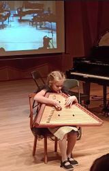 Выпускница школы Дарья Серапионова в дуэте с Н.Б.Дробышевской исполнили переложение для кантеле и фортепиано пьесу? «Туанельский лебедь», концертмейстер Ф.Ф. Хисмятова.