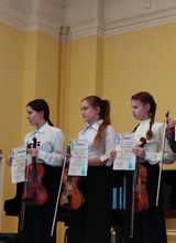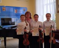 Настя Мудрякова А. (5а кл.), Полина Соловей П. (7б кл.), Трио: П. Соловей, С. Тарасова, А. Мудрякова (педагог – заслуженный работник культуры РК Марчук Н.В.);