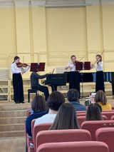 На этот раз творческий десант состоял из исполнителей на скрипке, кларнете и флейте: