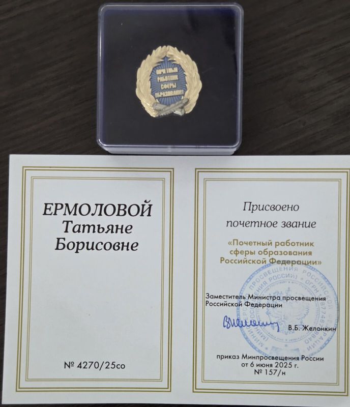 Учителю начальных классов Ермоловой Татьяне Борисовне присвоено звание «Почётный работник сферы образования Российской Федерации». Стаж работы учителя в нашей школе 42 года. Поздравляем коллегу и благодарим за бесценный вклад в развитие образования, за частички души и сердца, вложенные в обучение и воспитание детей младшего школьного возраста.