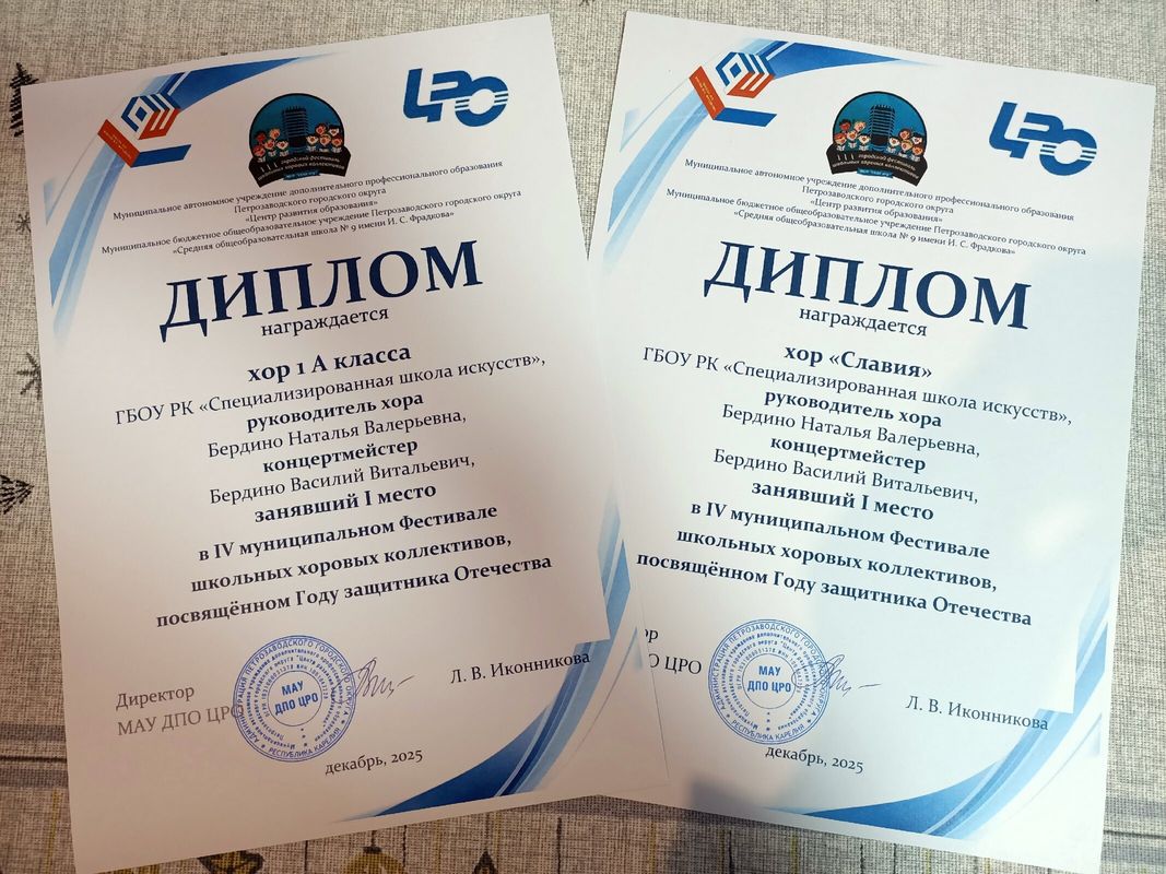 ХОР 1 КЛАССА удостоен звания Лауреат I степени среди школьных хоров 1-2 классов (за «Самое лиричное исполнение песни»);