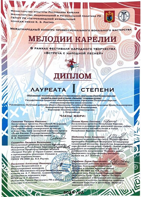 Поздравляем всех участников, родителей и педагогов-руководителя И.В. Ермолаеву, концертмейстера Е.В. Ермолаева и хореографа А.А. Поздееву с блестящими результатами и благодарим за высокий уровень подготовки и творческую преданность к народной песни!