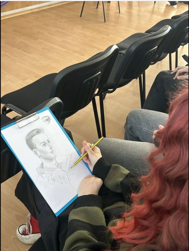 Во время мероприятия обучающиеся профильного направления ИЗО создавали художественный портрет Даниила Сергеевича. Безусловно диалог с присутствующими помогал в работе.