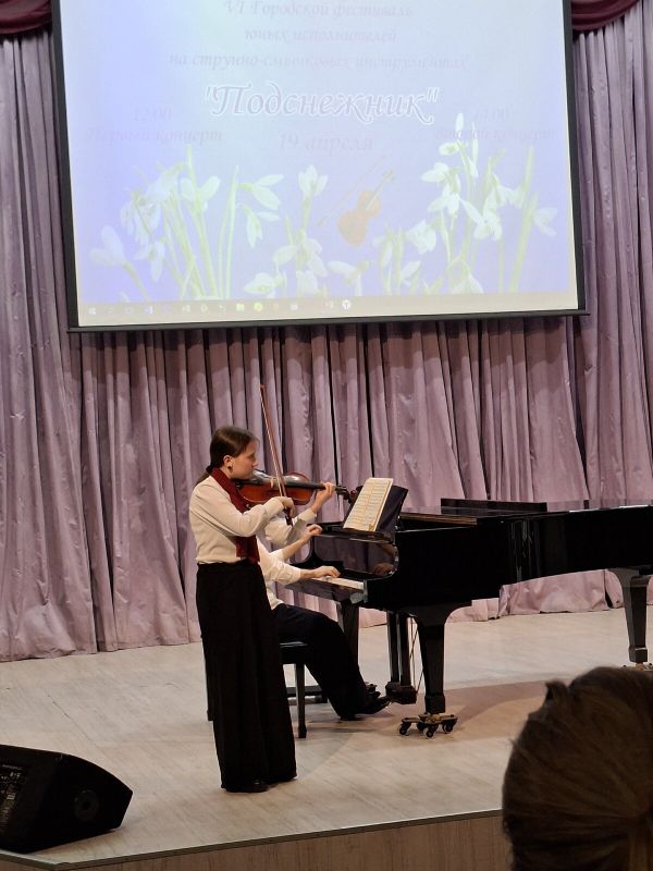 19 апреля 2026 года ученики 1 – 9 классов ДМШ и ДШИ г. Петрозаводска выступали в концертном зале Детской хоровой школы, где состоялся VI Городской фестиваль юных исполнителей на струнно–смычковых инструментах «Подснежник». Традиционным стало значительное число участников этого авторитетного фестиваля. В двух концертах выступили солисты и ансамбли. Наша школа всегда принимала участие во всех фестивалях и в этот раз выставила представительную группу юных музыкантов. Всем выступавшим вручены дипломы.